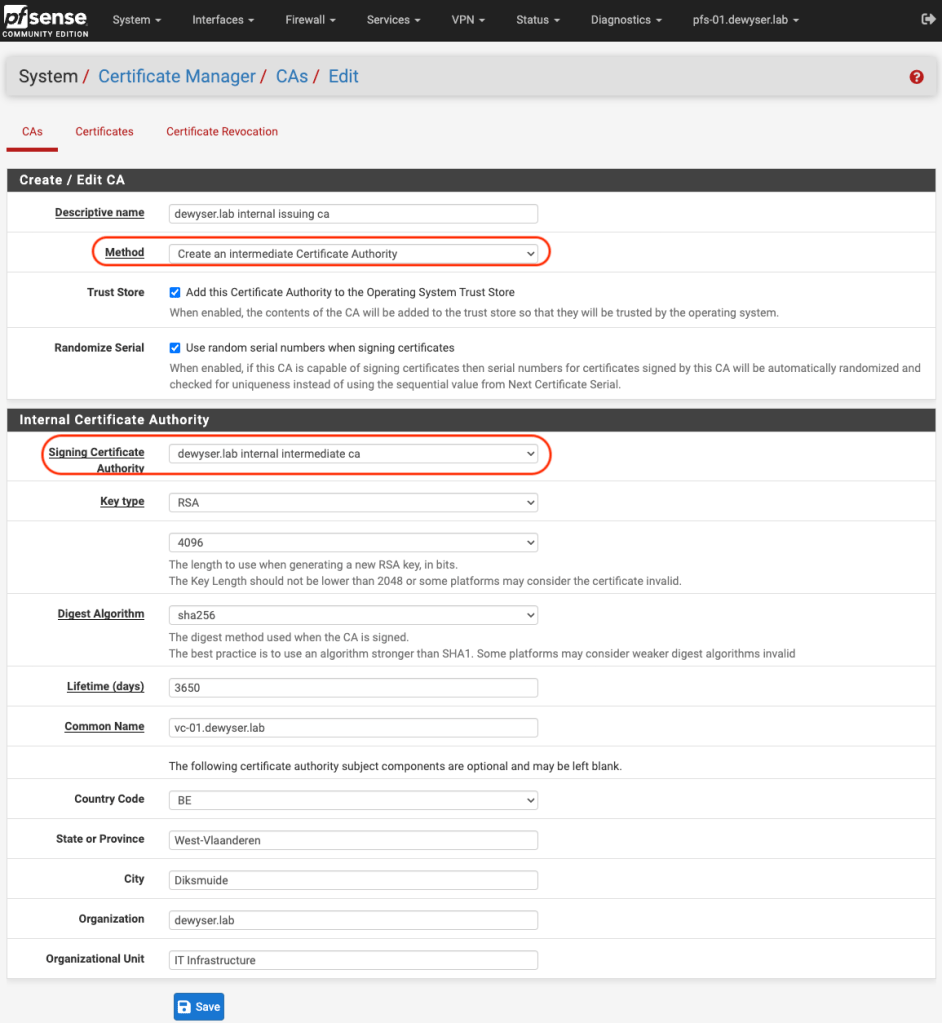 You also may notice that the common name will have the FQDN of my vCenter appliance. That is because I have plans for this certificate in a later blogpost.