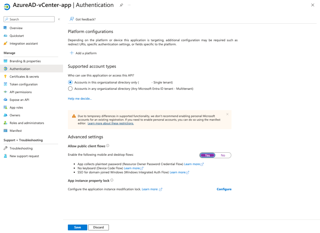 Copy and save the Value of the newly created client secret. Next enable the following mobile and desktop flows (App collects plaintext password):