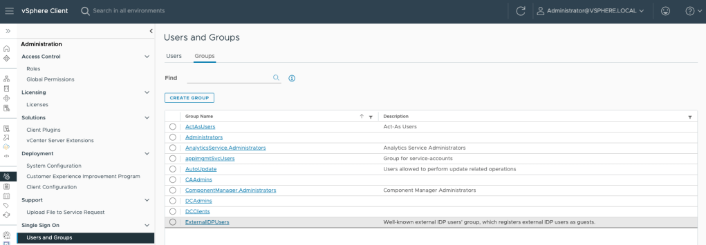 Back in vCenter you must configure group membership before Azure AD users can log in to vCenter Server. Select the Administrator group and edit the members