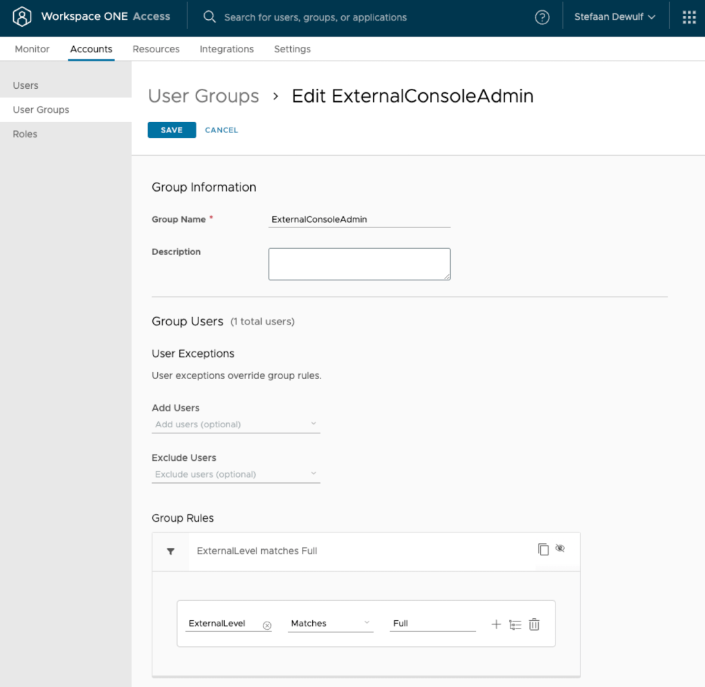 Next, create two groups and assign the correct roles based on the ExternalLevel attribute.